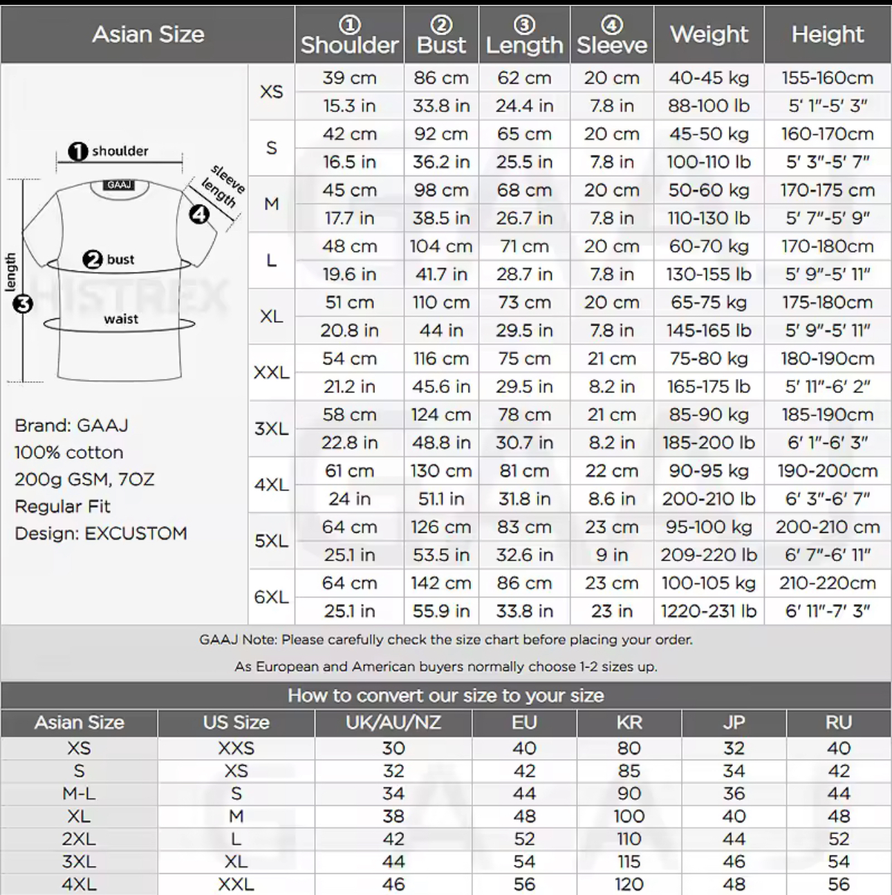 XS, S, M, L, XL, 2XL, 3XL, 4XL, 5XL, 6XL